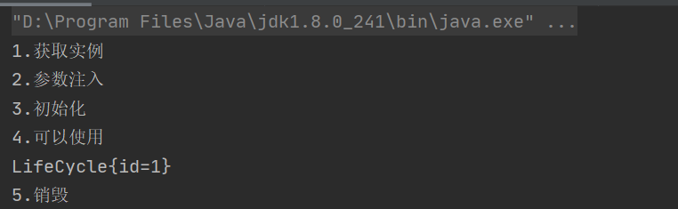 public class LifeCycle { private Long id; public LifeCycle() { super(); System.out.println("1.获取实例"); }